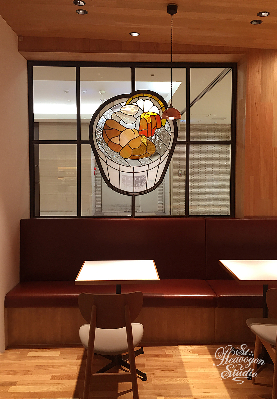 WORK Stained Glass Shop Sign 『 Soup Stock Tokyo 』 / Hakata Amu Plaza Type : Stained Glass / Size : H1200 W1000 Fukuokashi Hakata ←BACK Stained Glass Shop Sign :『 +ruli-ro 』 / Tokyo NEXT→ Small Window Stained Glass :『 Private residence』 / Tokyo